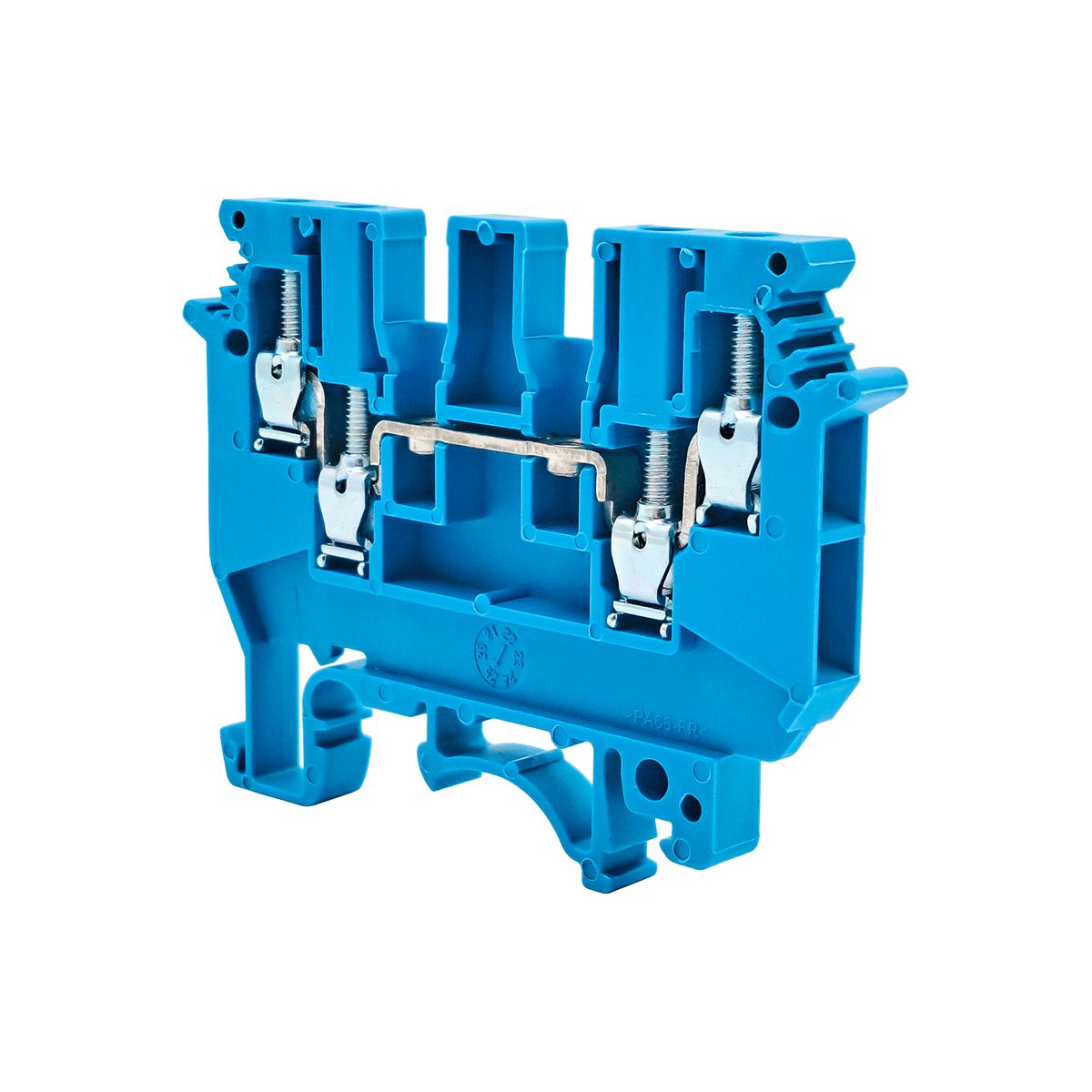 Четырехпроводные винтовые клеммы MTU-FO2.5BL применяются для разветвления токовых цепей. Данный тип удобен, когда к одной клемме необходимо подключить несколько проводников. В отличие от многоуровневых клемм данные клеммы имеют единую токопроводящую шину на 4 присоединения.