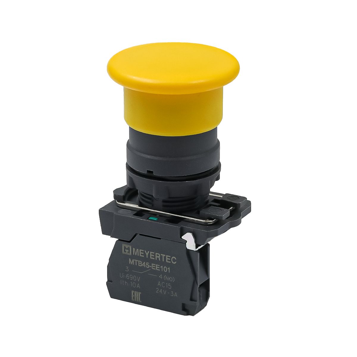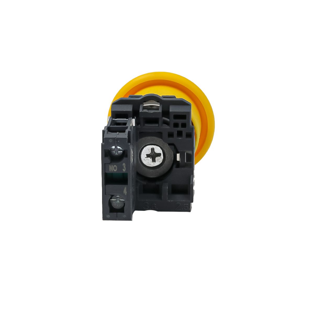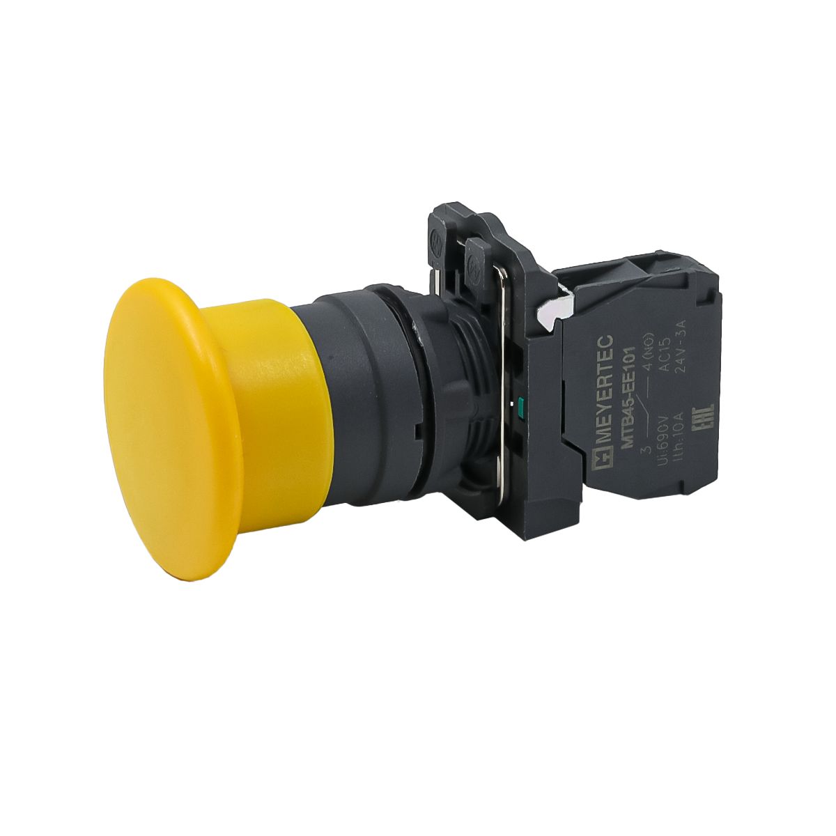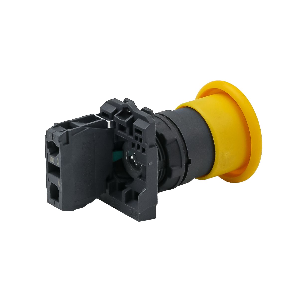 Кнопка грибовидная желтая, 40 мм, пружиный возврат, 1NO, IP65, пластик