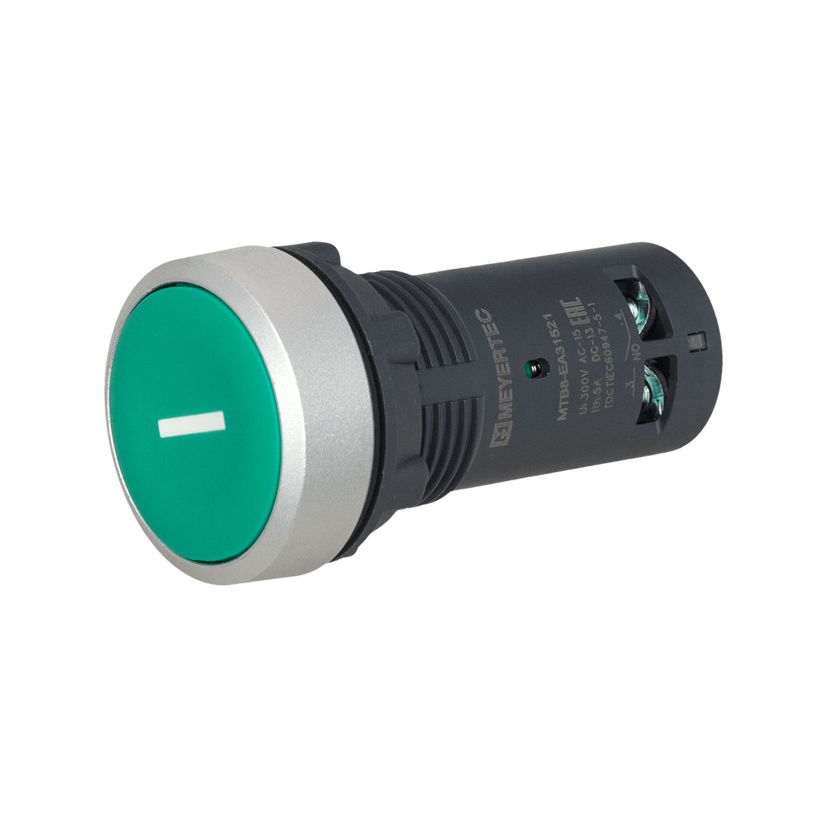 Кнопка плоская зеленая, маркировка "I", 1NO, IP65, пластик